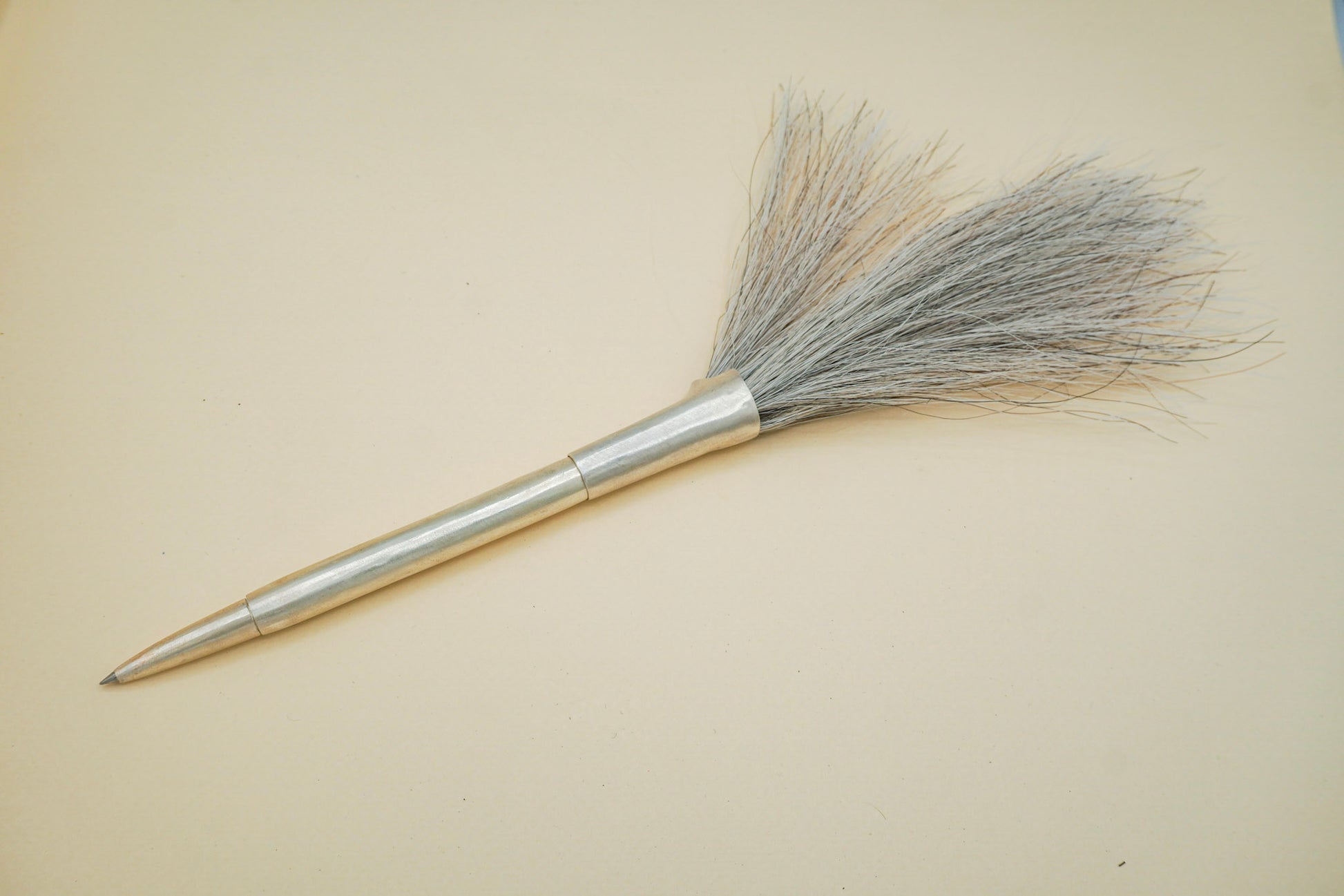 A plume of silver and horse hair to scrawl strong statements, large lettering and big spiraling doodles. Each pen comes with a set of 3 rollerball gel refills to keep you writing on and on.